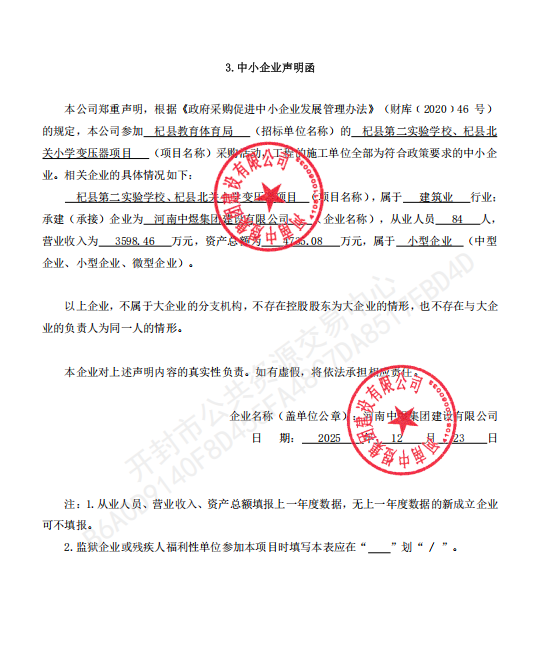 杞县第二实验学校、杞县北关小学变压器项目第一标段结果公告